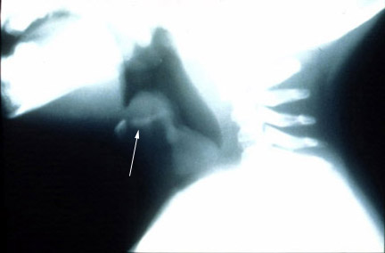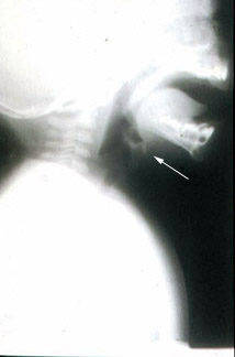 Lateral neck film illustrates normal epiglottis in profile.