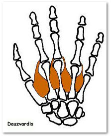 | ACTION Abduct from axis of middle finger. Flex metacarpophalangeal joint while extending interphalangeal joints |