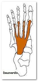 | INSERTION Four tendon into proximal phalanx of big toe and long extensor tendons to toes 2, 3 and 4 |