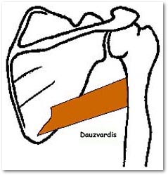 | ORIGIN Oval area (lower third) of lateral side of inferior angle of scapula below teres minor |