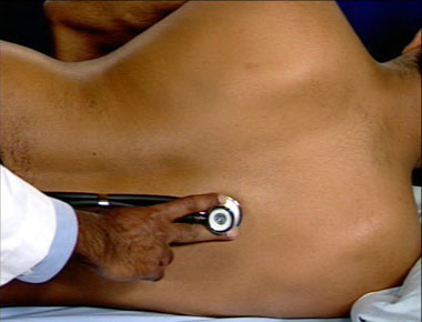 In lateral decubitus position the breath sounds are harsher in the dependent lung.