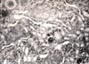RER (rough) endoplasmic reticulum).Abundant and preponderant in zone 1 and 2 where the highest synthetic activity occurs,being the most oxygenated and nourished zones of the lobule.