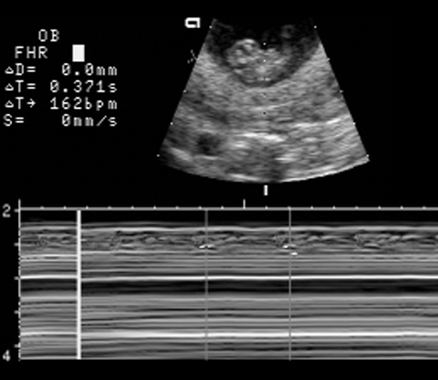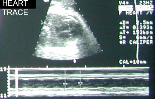 | Doppler Fetal heart. Identify heart, descending aorta, carotid artery. |