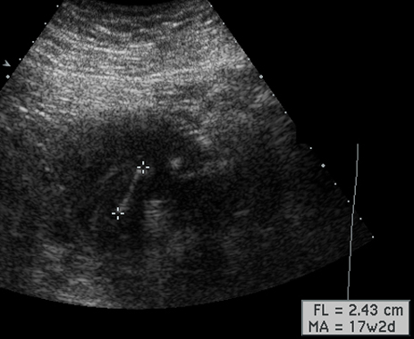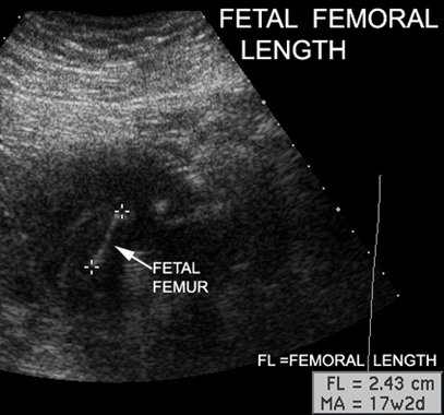 | Identify fetal femur. How do you use the length of fetal femur. |